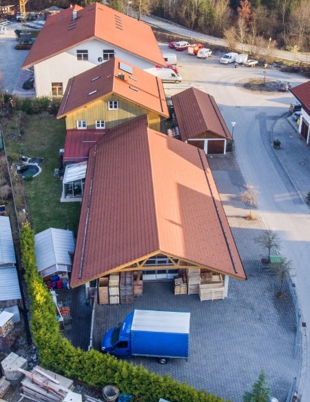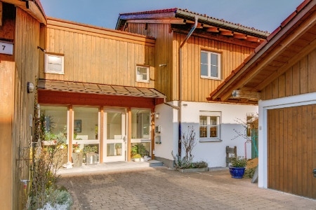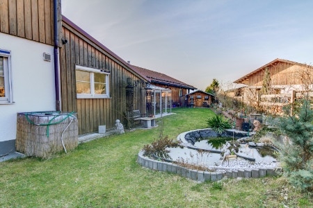 Die im oberbayerischen Landhausstil erbauten Gebäudeteile überzeugen durch viel Holz und freundlichem und großzügigem Ambiente.In den Büroräumen wurden umfassend Fliesen- oder Parkettböden verbaut, in den Wohnräumen Parkett. Teilweise sind in den Böden eingelassene Technikcontainer vorhanden.