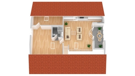 Aufgrund der durchdachten Bauweise können die einzelnen Bereiche getrennt von der Gewerbehalle oder in diese Gewerbenutzung teilweise oder ganz integriert werden.