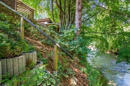 Ein eigener befestigter Uferzugang zur Schlierach, die an der nordöstlichen Grundstücksgrenze vorbeifließt, gehört zum Grundstück. Das Schlierachbett liegt ca. 5 m tiefer als das Grundstück.