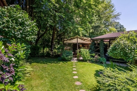 Der Bungalow wurde 1953 auf einem 490 m² großem Grundstück errichtet, von 1979 bis 1981 grundlegend (bis auf das Dach) renoviert und nachträglich unterkellert; zudem wurde auf der Südost- und Nordostseite angebaut.Das Erdgeschoss mit ca. 65 m² Wohnfläche teilt sich auf in Wohnzimmer, Schlafzimmer, Esszimmer, Küche, Bad, Gäste-WC, Treppe und Flur. Vom EG führt eine schmale Treppe ins DG mit einem kleinen Speicherraum. Im Keller mit ca. 41 m² Nutzfläche sind eine finnische Sauna mit kleinem Ruheraum, ein Schrankzimmer, ein Büro, der Heizungsraum mit Waschmaschine untergebracht.