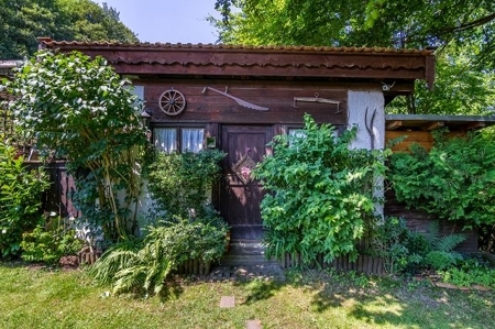 Für vielerlei kann der geräumige Gartenschuppen genutzt werden, z.B. als Werkstatt, Hobbyraum, Holzlagerplatz, Lager für Gartengeräte...