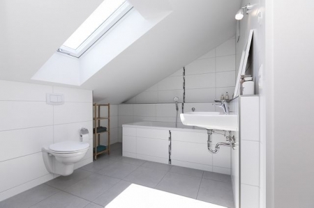 Sonstiges: Mansarde, Badewanne, WC, Waschbecken, Dachflächenfenster, Ganzglastüre