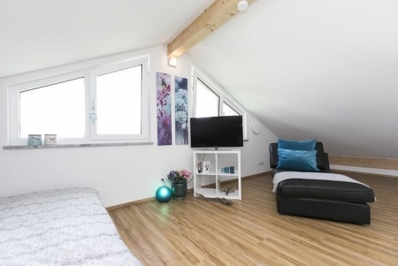 Im komplett ausgebauten Dachgeschoss mit Mansarde sind ein Studio sowie ein schickes Badezimmer mit Badewanne und WC untergebracht. Das Studio eignet sich optimal als Schlafraum für ein weiteres Familienmitglied oder auch als Büro, Gästezimmer, etc..