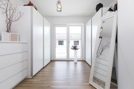 Im Obergeschoss können Sie drei Zimmer nach Ihren Wünschen und Bedürfnissen nutzen: Ob als Schlaf-, Kinder-, Arbeits- oder Ankleidezimmer - Ihrer Phantasie sind keine Grenzen gesetzt. Zusammen mit dem hochwertig ausgestattetem Bad ein durchdachtes Wohnkonzept.