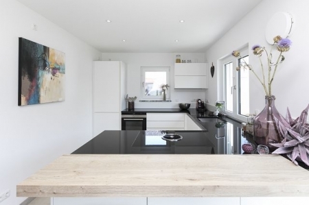 Im Preis inbegriffen ist die maßangefertigte Markenküche (2017) mit Siemens Elektrogeräten sowie einer Bora-Kochinsel. Die integrierte Theke incl. der Thekenstühle strahlt Gemütlichkeit aus und grenzt zugleich die Küche vom Wohn-Essbereich etwas ab.