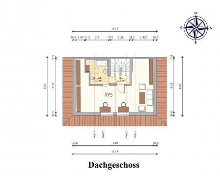 Studio: ca. 15,3 m² Wfl. (GF 36,1 m²)