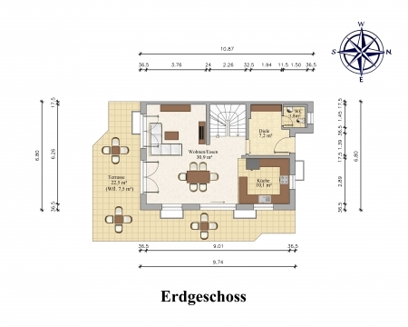ERDGESCHOSS:Diele: ca. 7,2 m² Wfl.