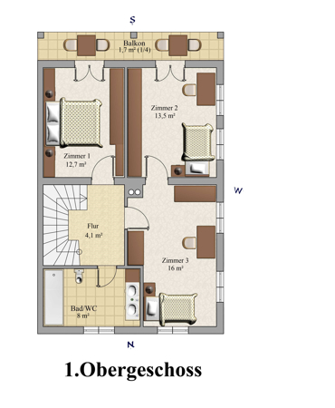 1. OBERGESCHOSS: Gesamtfläche ca. 41,0 m² Nfl.