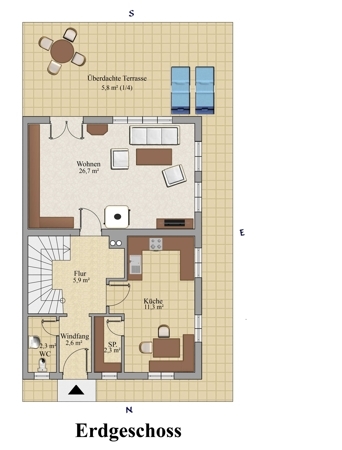 ERDGESCHOSS: Gesamtfläche ca. 57 m² Wfl.Wohnzimmer: ca. 26,7 m² Wfl.