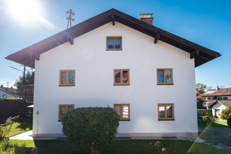 2008: Einbau neuer Fenster/Fenstertüren aus Kunststoff mit Holzdekor und Wärmeschutzglas