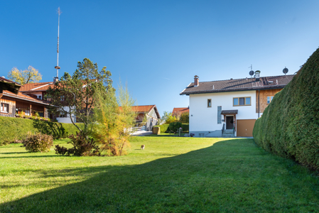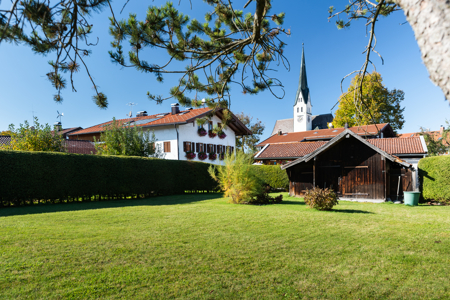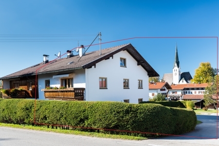 Das 1064 m² große Grundstück liegt in Sachsenkam an der Tölzer Straße, eine relativ ruhige Dorfstraße. Auf dem Grundstück wurde 1965 ein Zweifamilienhaus errichtet. Der untere Teil des Grundstücks läßt eine Bebauung nach § 34 zu, ein Bebauungsplan besteht nicht.An der westseitigen Grundstücksgrenze wurde das Zweifamilienhaus an ein bereits bestehendes Gebäude angebaut. Neben einer großzügigen Hofeinfahrt mit zwei geplasterten Kfz-Stellplätzen und einem großzügig angelegten und gepflasterten Hofraum befindet sich im unteren Teil des großen Gartens ein Holzschuppen. Das Grundstück ist mit einer sehr schönen, hohen Hecke begrenzt.
