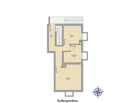 Im Keller befindet sich ein Technikraum, ein Öltankraum wie ein weiterer Kellerraum mit ausreichender Belüftung. Der Keller ist über eine Innen-, wie auch über eine Außentreppe erreichbar.