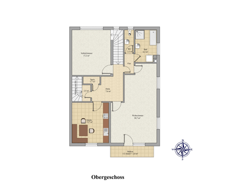 Schlafzimmer ca. 17,2 m² Wfl.