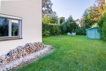 Der im Sondernutzungsrecht zugeordnete Garten schließt einmal im Süden an die Terrasse an und zieht sich von der Ostseite des Haus bis auf die gegenüberliegenden Nordseite des Hauses, wo ein Gartenhäuschen steht. Sie haben Sonne vom Vormittag bis zum frühen Abend. Hier finden Hobbygärtner Platz zum "Garteln", Kinder zum Spielen... Die Gestaltung des Gartens liegt ganz in Ihren Händen.