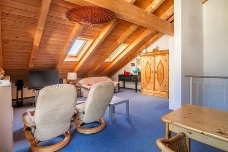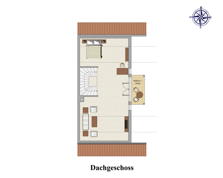 Das zum Studio ausgebaute Dachgeschoss mit Ostbalkon erhöht den Mehrwert wie auch die Wohnqualität. Durch zwei zusätzliche Dachflächenfenster haben Sie viel Tageslicht. Es besteht außerdem die Möglichkeit zum Einbau eines Bades.