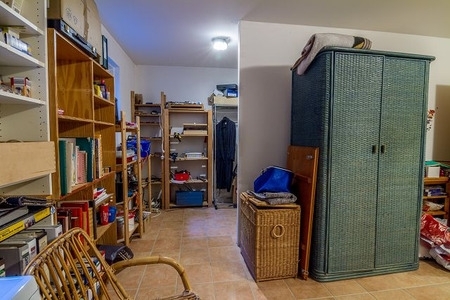 Keller mit ca. 47 m² Nutzfläche: Hobbyraum mit Badewanne, Waschraum, Flur und Schleuse zur Tiefgarage