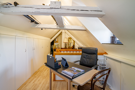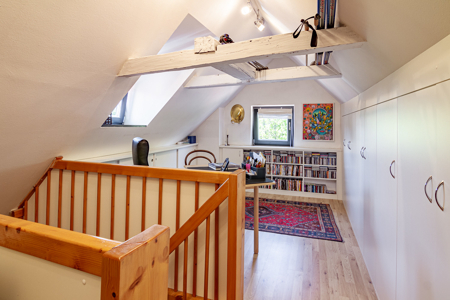 Sonstiges: Zugang von der Wohnung über eine Holztreppe und von außen über das Treppenhaus, Einbauschränke, zwei Fenster
