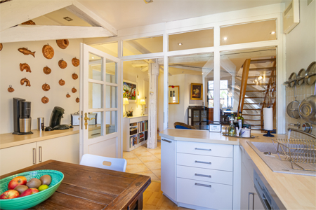 Fußböden teilweise Fliesen, teilweise Holzparkett