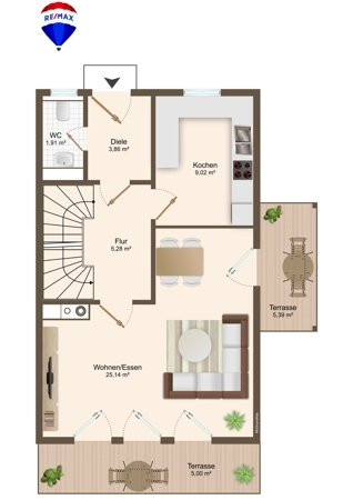 Dieses sehr gepflegte, moderne und energetisch aufwendig in 2005 gebaute Reihenendhaus bietet viel Platz für die Familie, zusammen mit einem nach Südwesten ausgerichteten Eckgarten, der optimal eingewachsen ist.Im Erdgeschoß erwartet Sie beim Eintreten eine geräumige Diele mit GästeWC und Übergang zum Flur/Treppenhaus. Von dort gelangen Sie in die Küche sowie in das geräumige Wohnzimmer mit über ca. 25 qm. Vom Wohnzimmer erreichen Sie die beiden Terrassen: Eine Frühstücksterrasse nach Südosten und eine große Südwestterrasse zum Garten.
