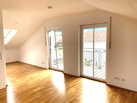 Im Dachgeschoß befindet sich ein weiteres Duschbad, sowie ein großer Raum -natürlich mit schrägen Decken- mit ca. 25 qm Wohn- und ca. 35 qm Nutzfläche, sowie ein Südbalkon.