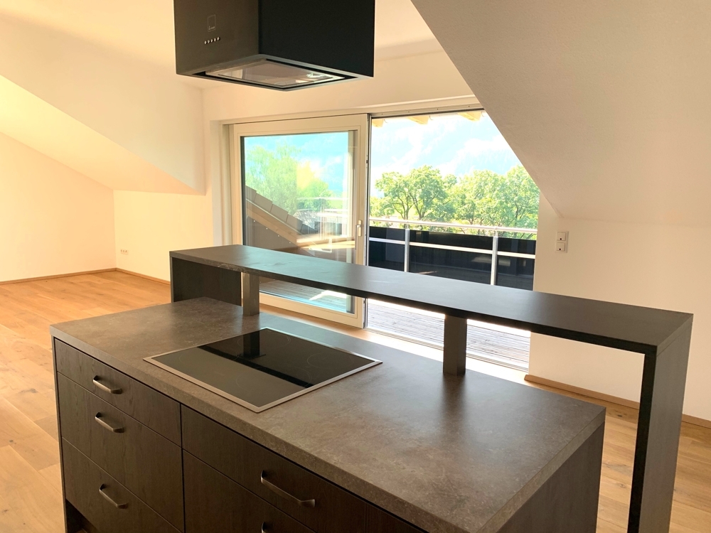 Im großen Wohnraum verwöhnt Sie eine offene, voll ausgestattete Einbauküche mit Kochinsel und Essbar, sowie ein Ost- und ein großer uneinsehbarer Südbalkon mit freiem Blick auf die Allgäuer Berge vom Immenstädter Horn bis zum Hochgrat!