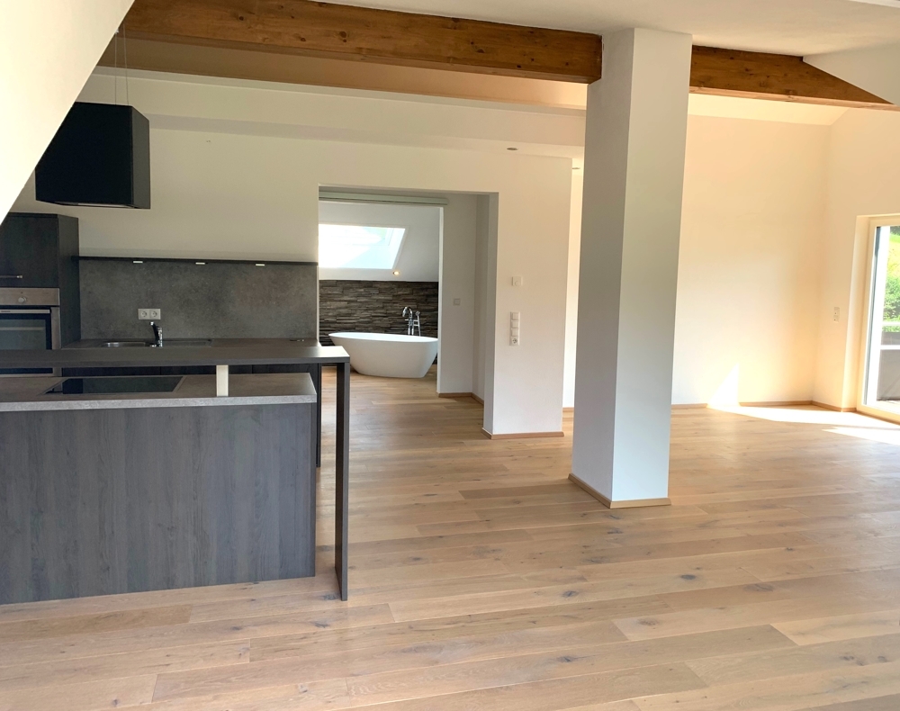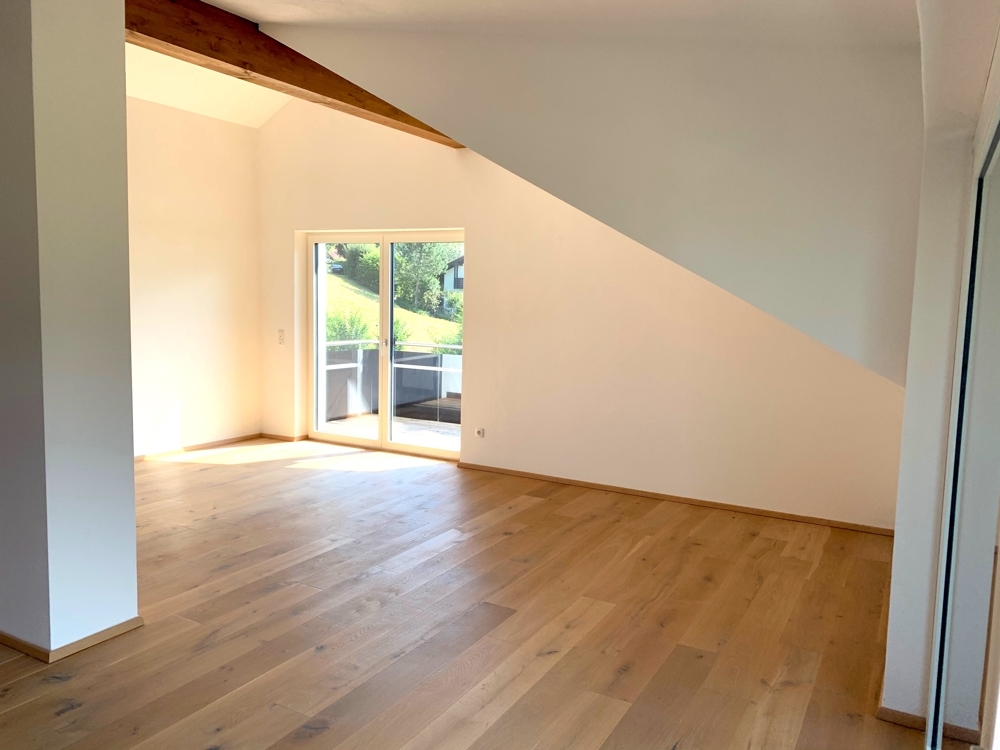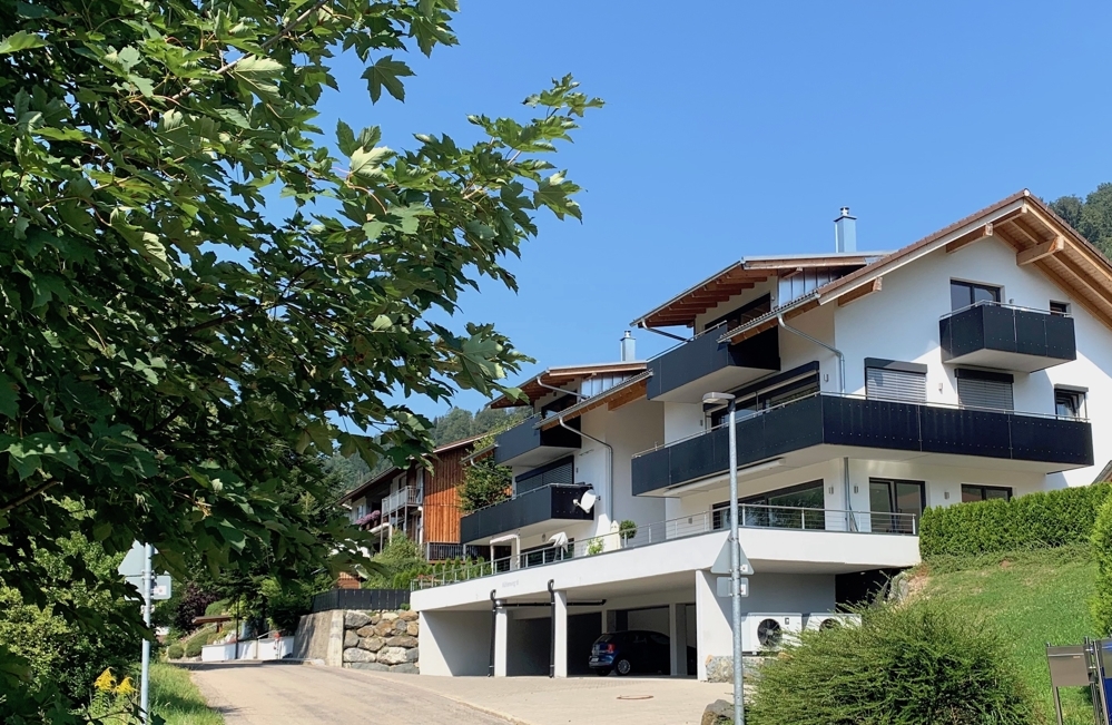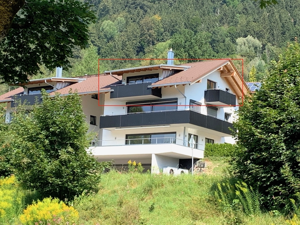 Eine Top-Wohnung im Ortsteil Wiedemannsdorf nahe Oberstaufen: Komfortabler geht es kaum! Superlage im Dachgeschoß mit freiem Blick nach Süden.Fahren Sie mit dem Lift von der offenen Tiefgarage in Ihre großzügige 2-Zimmer-Dachgeschosswohnung: Exklusiv gestaltet, in offener Bauweise mit Glaswänden zum Bad mit freistehender Wanne und großer Extradusche, sowie ein separates WC.