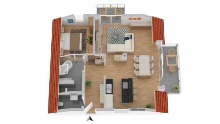 Das Haus wurde als KfW-Effizienzhaus 70 errichtet, so dass sehr niedrige Energiekosten (A+) entstehen. Da Dachgeschoss, ergibt sich eine größere Wohnnutzfläche von ca. 90 qm.In der Wohnung erwartet Sie eine edle Ausstattung mit: