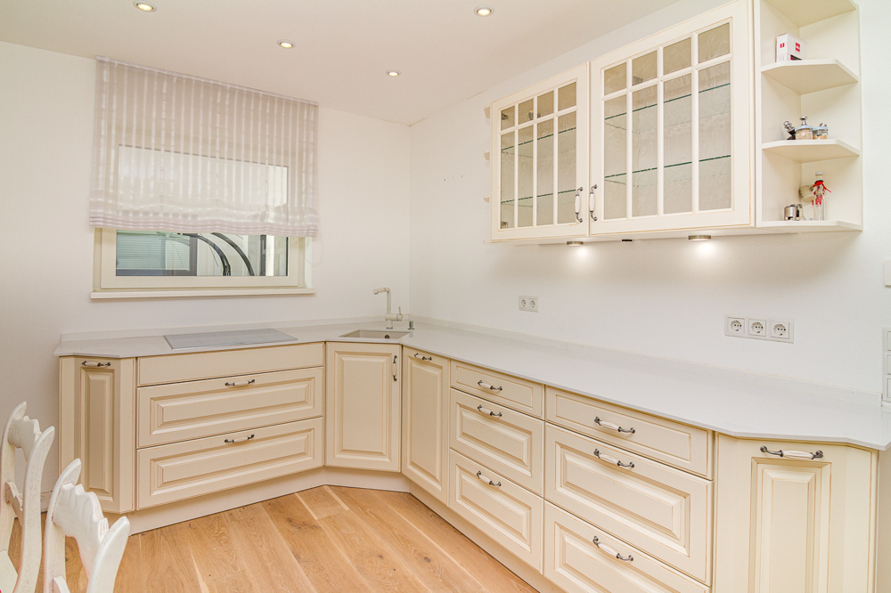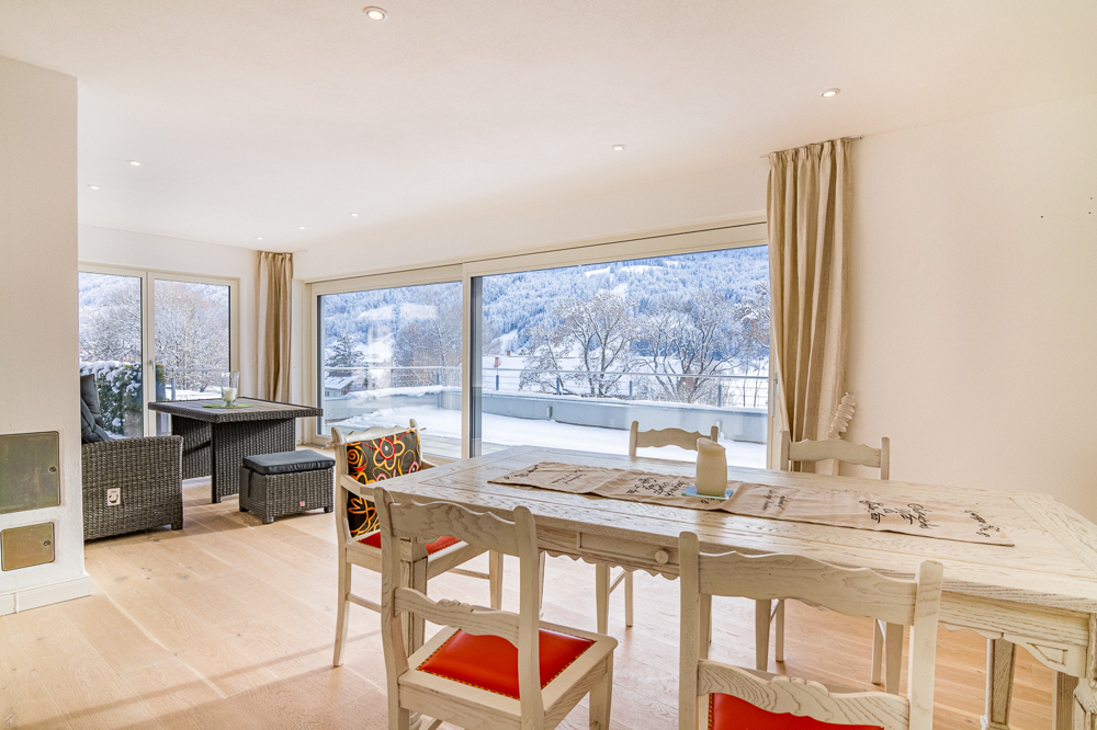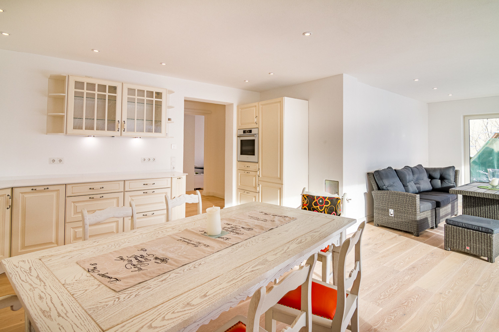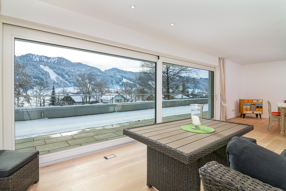 Im Wohnraum verwöhnt Sie eine offene, voll mit hochwertigen und modernsten ausgestattete Einbauküche, sowie der umlaufende Terrassenbalkon mit freiem Blick auf die Allgäuer Berge vom Immenstädter Horn bis zum Hochgrat!