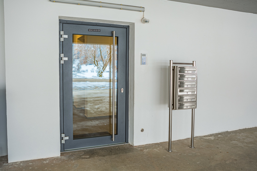 Zur Wohnung gehört ein leicht zu befahrender Doppel-Stellplatz (2 Kfz hintereinander) mit eigenem Elektroanschluss in der offenen Tiefgarage zum Untergeschoß (ebene Einfahrt von der Straße), ein Kellerabteil (ca. 8 qm), sowie ein Stellplatz/Anschluss für Waschmaschine und -trockner im gemeinschaftlichen Waschraum.