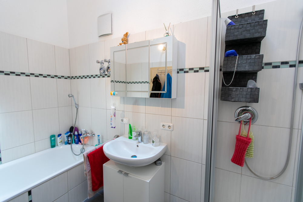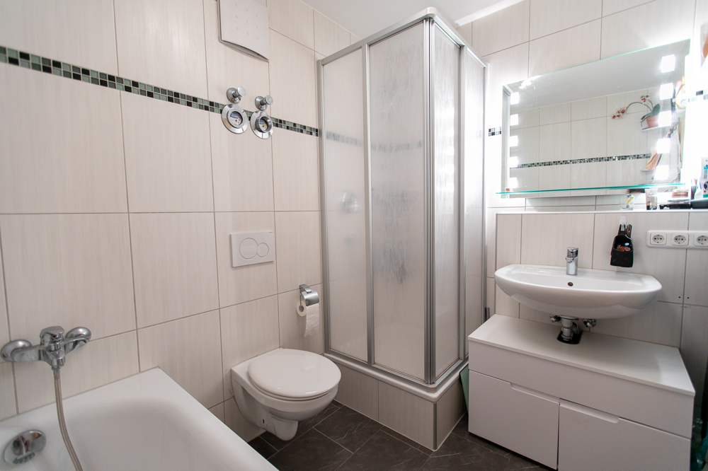 Sonstiges: Dusche, Badewanne, WC, Waschbecken, deckenhoch gefliest