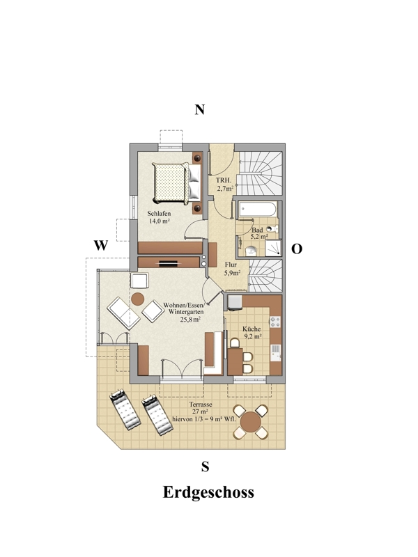 Wohnen/Essen/Wintergarten: ca. 25,8 m² Wfl.