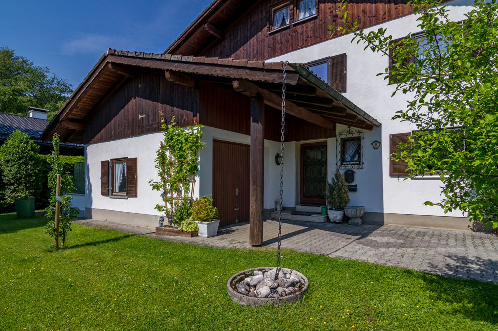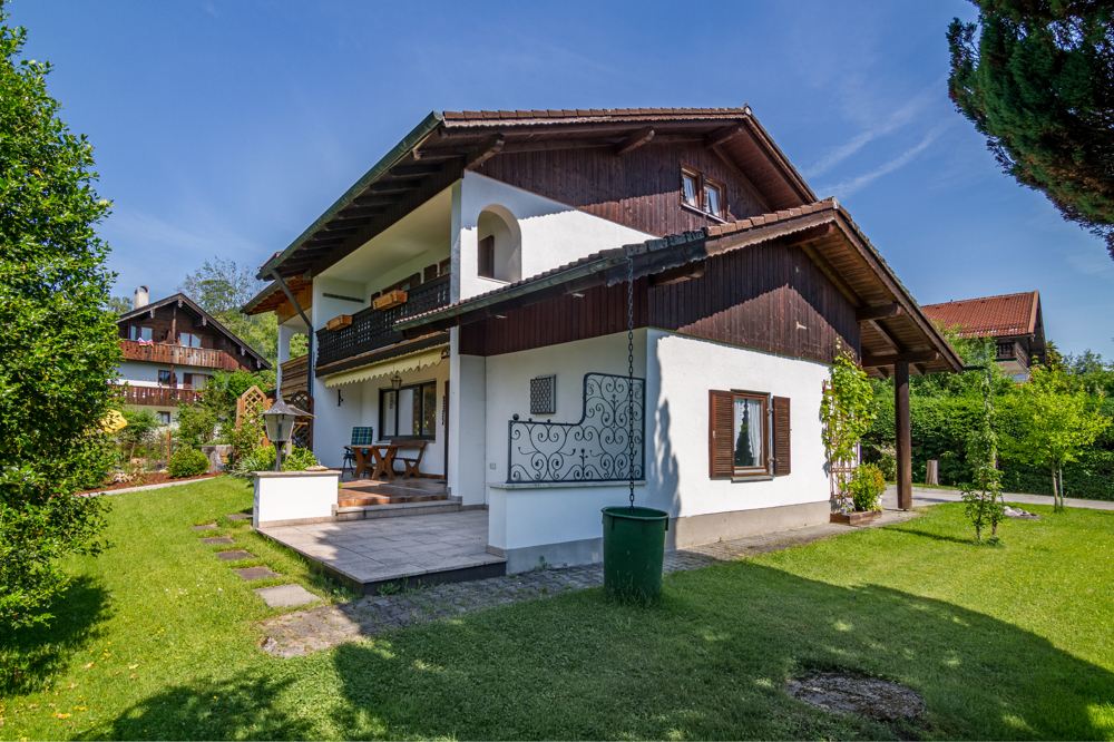 Die Doppelhaushälfte wurde 1976 im oberbayerischen Stil in solider Ziegelbauweise erbaut.Von der 34 m² großen Südterrasse und dem ca. 10 m² großen Südbalkon genießen Sie nicht nur die absolute Ruhe, sondern auch ein atemberaubendes Bergpanorama. Das über 500 m² große Grundstück ist eingezäunt und zum größten Teil mit Hecken begrenzt.