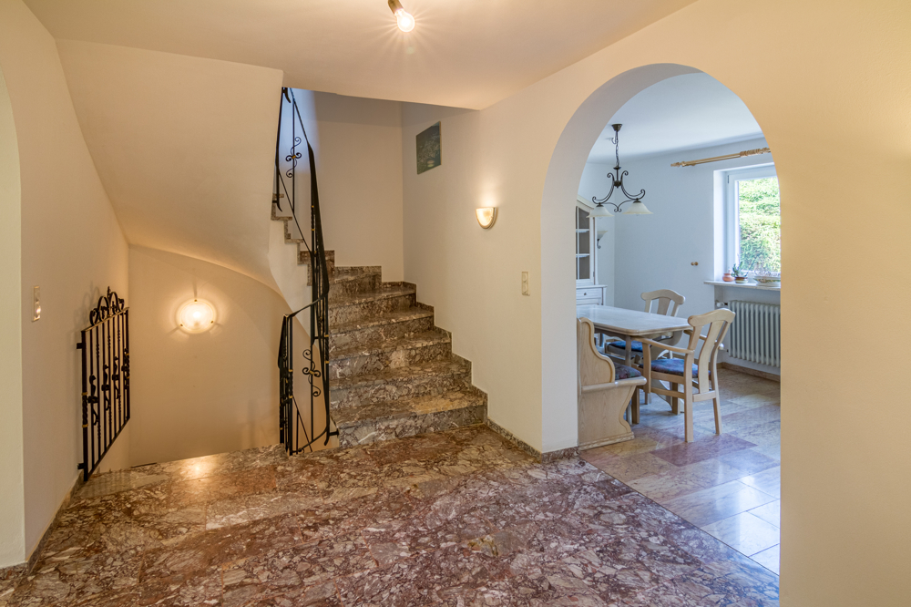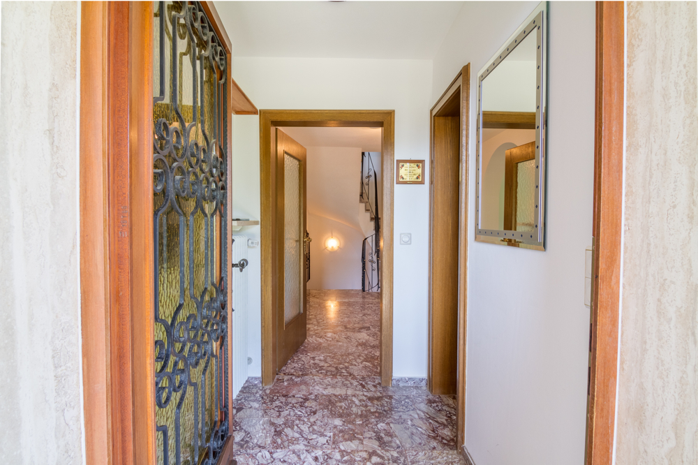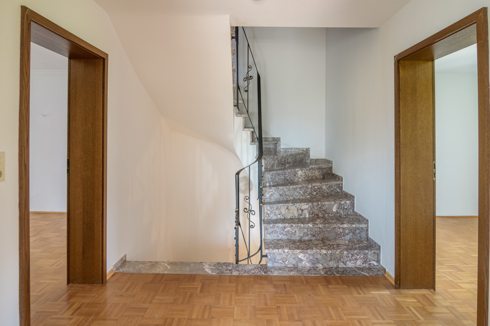 Im Obergeschoss sind Parkettböden aus Massivholz, das Treppenhaus und die Diele sind mit Marmorböden ausgestattet, das Bad ist mit einem Holzdekorboden verlegt.