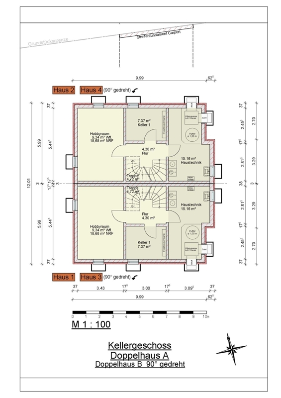 Hobbyraum: ca. 9,34 m² Wfl. (Gesamtfläche ca.18,68 m²)