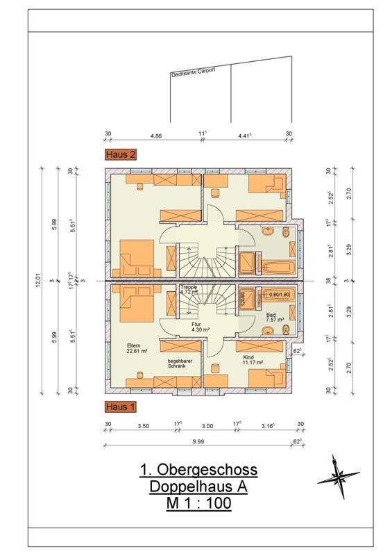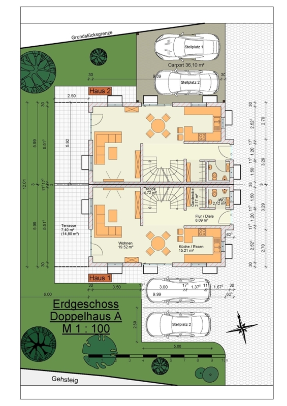 Auf Wunsch wird ein Carport aus Holz für 2 Kfz gegen Aufpreis von 19.500 Euro erstellt.