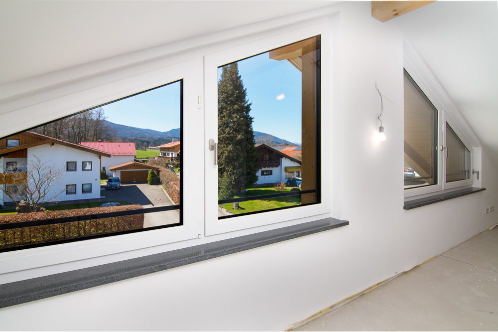 *Fenster in Kunststoff mit 3-fach-Wärmeschutzglas, innen weiß, außen mit hochwertiger Acrylcolorbeschichtung