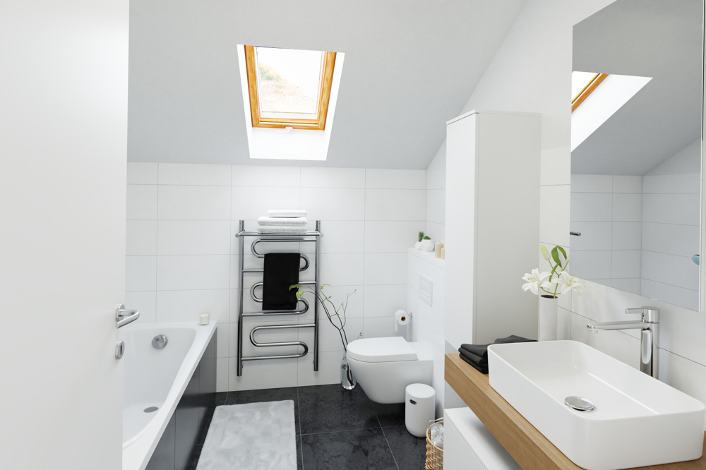 Alle Räume verfügen über Isolierglasfenster, die Dachräume über ebensolche Holzdachflächenfenster. Im Büroraum im Erdgeschoss ist ein Wasseranschluß und -abfluß vorhanden, kann entsprechend aktiviert werden.