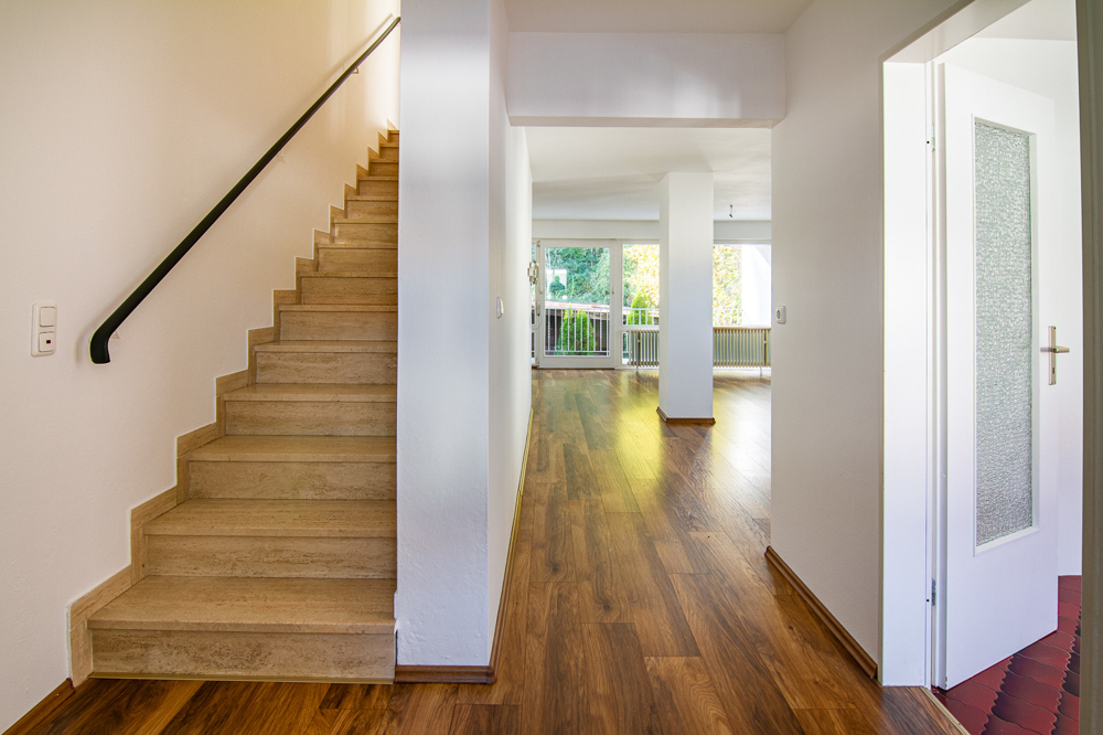 Das Haus ist laufend gepflegt worden, entspricht den heutigen Standards. Flur, Küche, Bad, WC und Balkone sind gefließt, die Wohnräume mit hochwertigem edlem Holzlaminat ausgelegt.Die in 2016 eingebaute Erdgas-Zentralheizung im Erdgeschosskeller entspricht den Anforderungen des GEG.