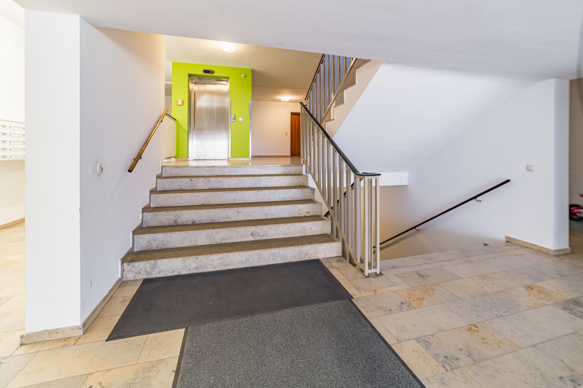 *Barrierefreier Zugang bis zur Wohnung (ein kleiner Aufzug in der Eingangshalle fährt bis zur Höhe des Liftes, von dort aus bringt Sie der Lift in jede Etage, vom Keller bis ins oberste 6. Dachgeschoss).