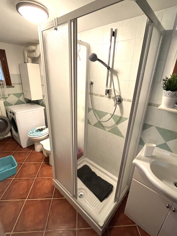 Zum Gästezimmer gehört auch ein zweites Badezimmer mit Dusche.