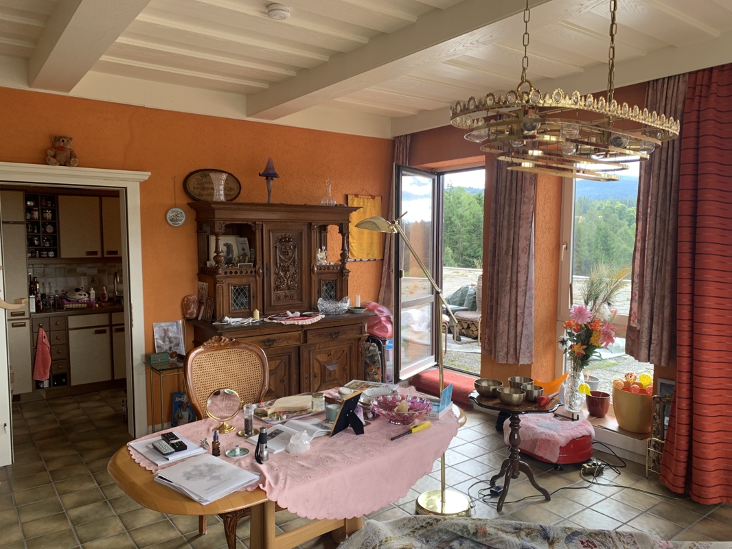 Die Immobilie ist von einer malerischen Landschaft umgeben und bietet einen atemberaubenden Panoramablick auf die umliegenden Wälder und Berge. Die Lage gewährleistet eine angenehme und friedliche Atmosphäre.