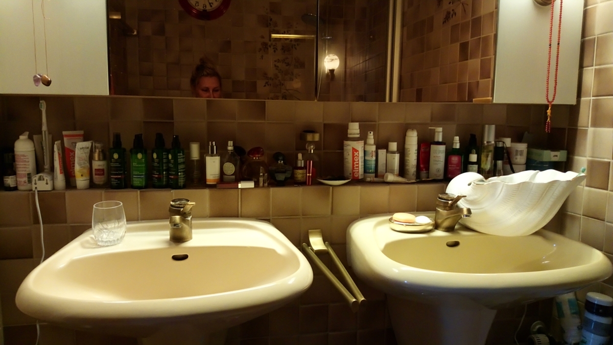 - Bad mit ca.5,5 m², raumhoch gefließt, aktuell mit Wanne und 2 Waschbecken,