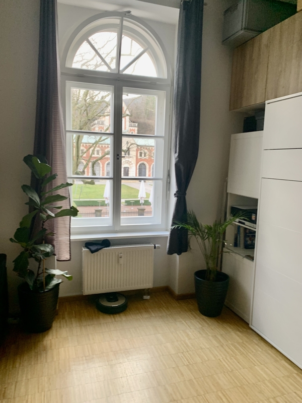 Aus der hochherrschaftlichen Salinenadministration entstand 2011-2013 das "Königspalais":Im komplett grundsanierten Gebäude liegt die großzügige, aktuell vermietete 2-Zimmerwohnung im 1.Obergeschoß. Sie ist mit Lift erreichbar, und bietet einen herrlichen Blick durch die hohen Segmentbogenfenster auf die Alte Saline und die dahinter liegenden Bad Reichenhaller Berge.