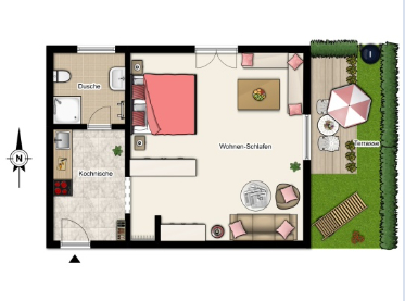 Hier bieten wir Ihnen ein süßes Apartment mit vielen Extras an.Die kleine aber feine Küche ist bereits mit einer Einbauküche ausgestattet und im Kaufpreis enthalten. Der ca. 23 m2 große Wohn- und Schlafbereich bietet ein angenehmes Wohlfühlambiente und Zugang zur Terrasse und zum privatem Garten. Das Duschbad mit Fenster ist zeitlos hell gefliest und in TipTop Zustand.