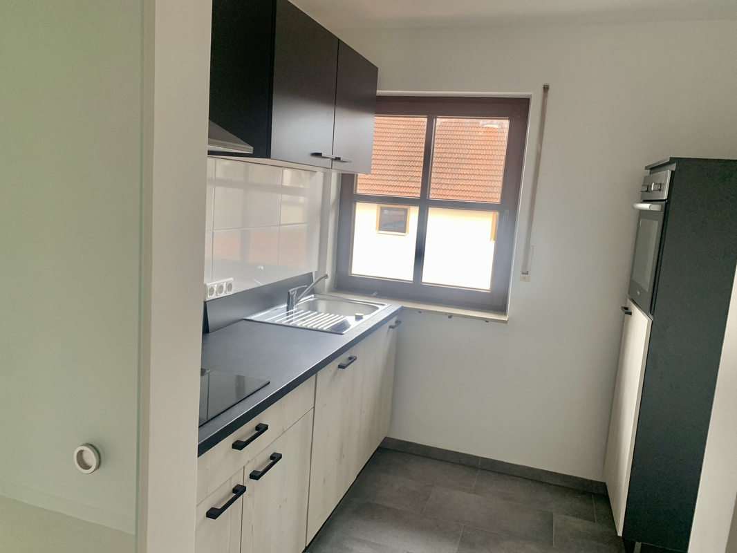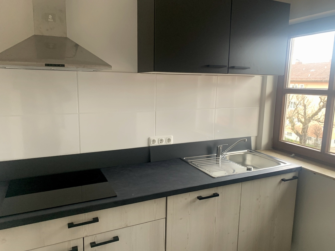 - eine 5,9 qm große Küche mit Fenster und komplett ausgestatteter neuer Einbauküche mit Herd, Spüle, Spülmaschine, Backofen und Kühlschrank