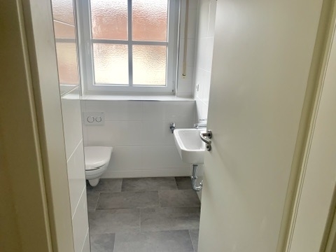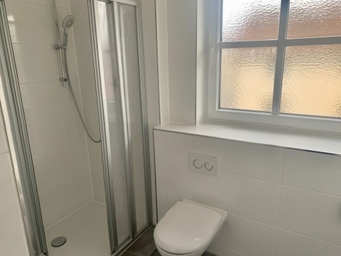 - ein 4,8 qm großes Badezimmer mit Fenster und neuen Sanitäranlagen: Dusche, WC, Waschbecken und Waschmaschinenanschluß
