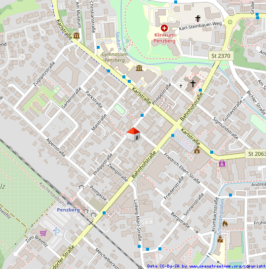 Die Wohnung liegt unweit des Bahnhofs (nur 4 Minuten zu Fuß) in einer Nebenstraße im Stadtzentrum von Penzberg.Penzberg ist eine Kleinstadt im oberbayerischen Landkreis Weilheim-Schongau und liegt rund 50 Kilometer südlich von München. Die ehemalige Bergwerksstadt wird heute durch die Firma Roche Diagnostics geprägt.
