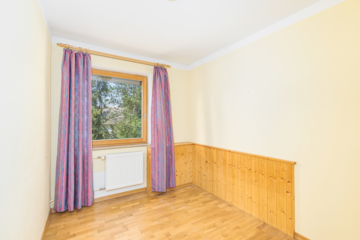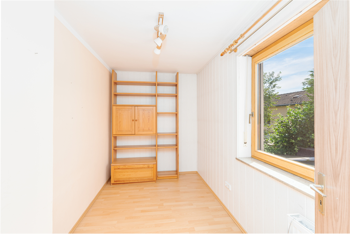 Das Obergeschoss ist eingeteilt in drei helle Zimmer und einem Bad. Alle Räume sind Vollgeschosse und haben keine Dachschrägen. Vom Obergeschoss gelangt man über eine ausklappbare Leiter zum trockenen Dachspeicherraum.