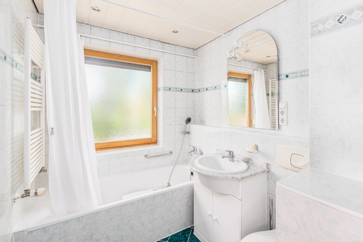 Fenster, Badewanne, WC, Waschbecken, Handtuchtrockner