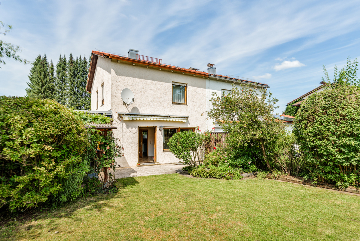 Die kleine Doppelhaushälfte wurde 1960 in Geretsried-Gartenberg erbaut, eine der besten Lagen in Geretsried. Das Haus ist renovierungsbedürftig und steht auf einem, von einer Anliegerstraße abgewandten 371 m² großen Grundstück. Beide Gärten (Süd- und Nordseite) sind mit Sträucher und Obstbäume eingewachsen, bestens geeignet für eine Familie mit Kindern.Eine Wohnfläche von ca. 83 m² verteilt sich auf zwei Vollgeschosse (Erd- und Obergeschoss) mit insgesamt 4,5 Zimmern und einem Keller: